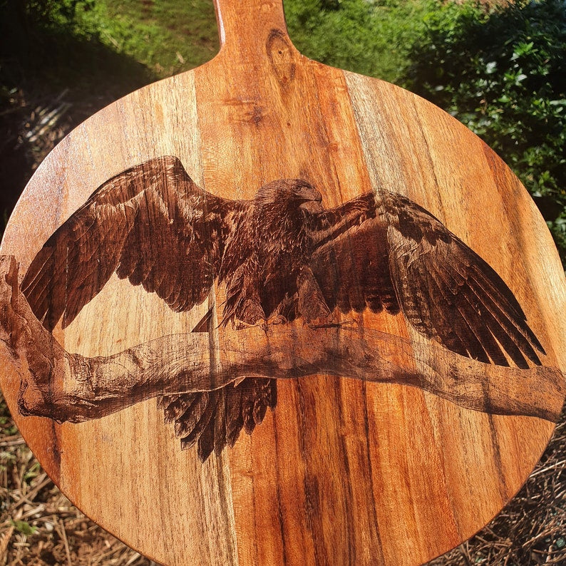 Make your kitchen stand out with this beautifully engraved hardwood chopping/cutting board featuring a Wedge-tailed Eagle.